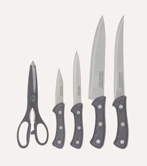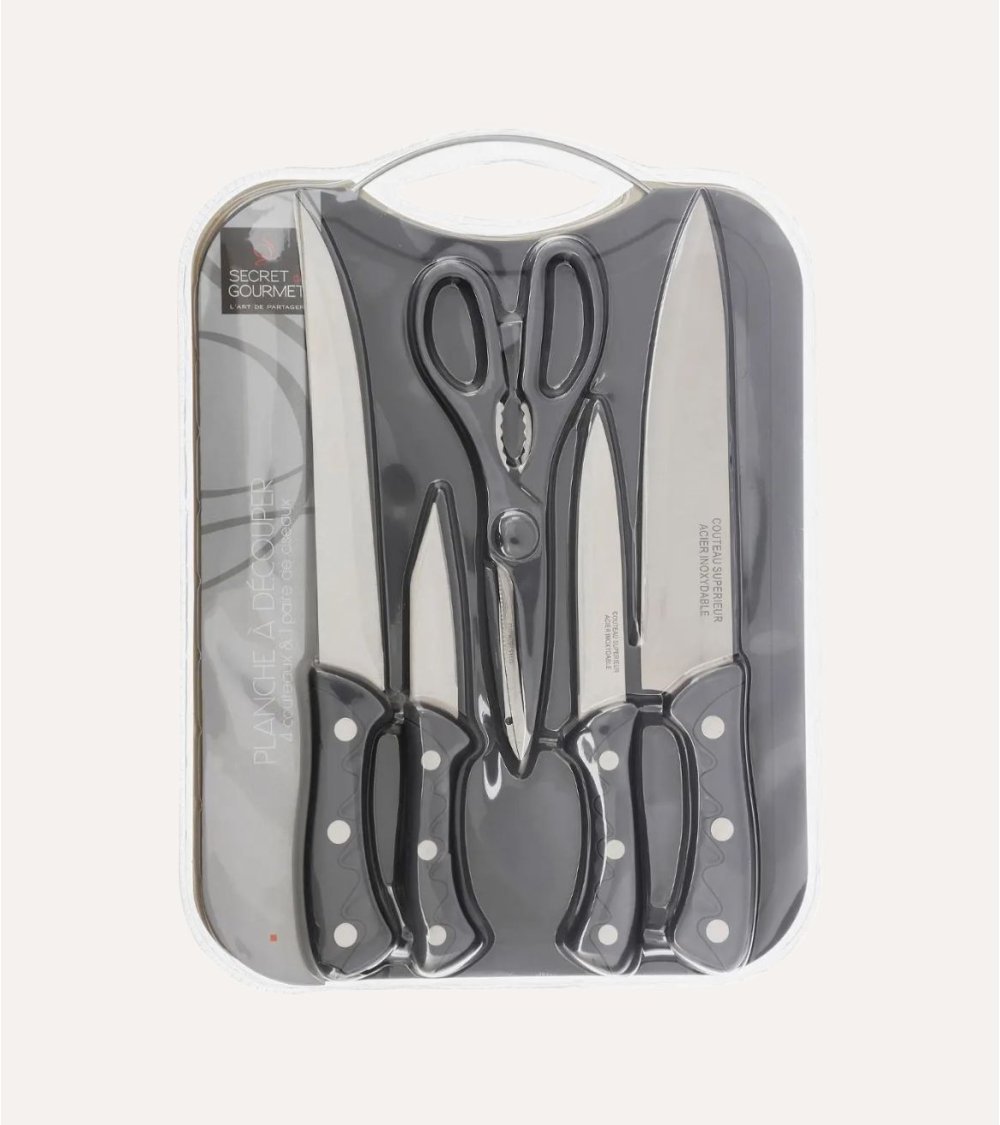 Set de 4 Cuchillos, Tabla de Corte y Tijeras de Cocina