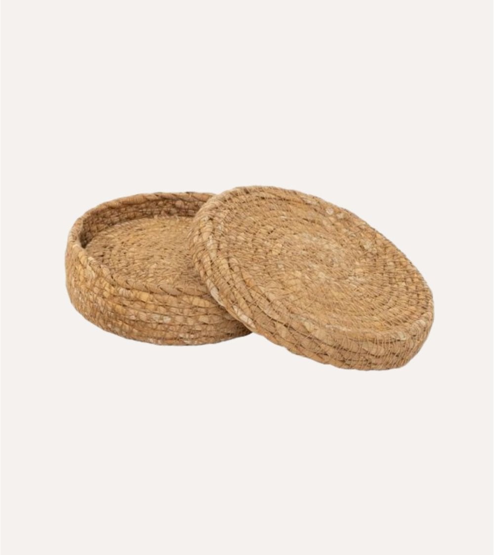 Este set de 4 posavasos de alga trenzada es perfecto para cualquier hogar. Con un tamaño de 12 x 12 x 4 cm, estos portavasos son ideales para proteger tus mesas de manchas y rasguños. Su diseño trenzado aporta un toque rústico y elegante a tu decoración. Son duraderos y fáciles de limpiar. ¡Añade estilo y funcionalidad a tu hogar con estos portavasos de alga trenzada!