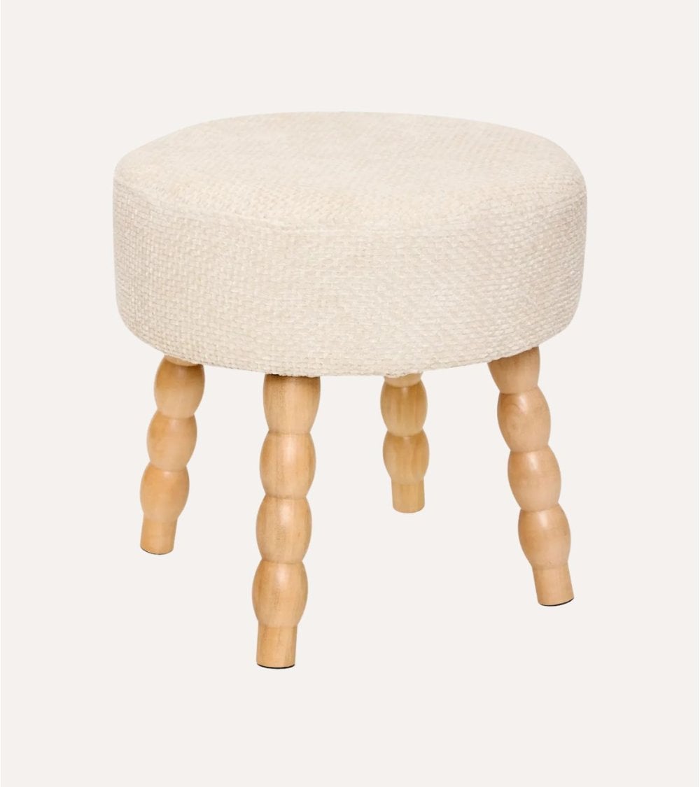 Este taburete no solo es atractivo visualmente, sino también muy funcional. Puedes usarlo como asiento adicional para invitados, reposapiés o incluso como una pequeña mesa auxiliar para colocar objetos ligeros. Su tamaño compacto lo hace fácil de mover y adaptar a diferentes ambientes sin ocupar mucho espacio.
