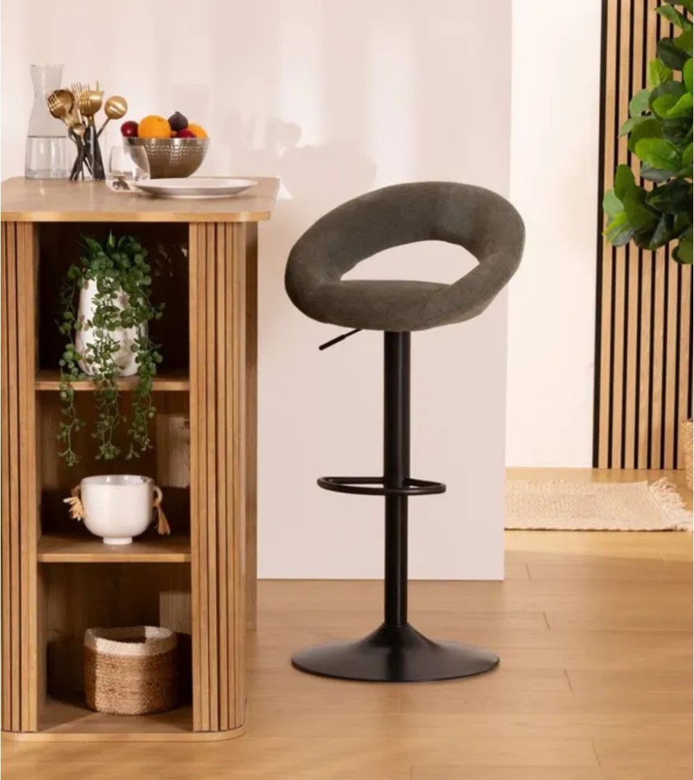 El asiento de esta silla alta está diseñado con una forma ergonómica que proporciona apoyo cómodo durante largos ratos, ya sea en desayunos diarios, cenas informales o reuniones con amigos. El tapizado en tejido de poliéster es fácil de mantener, resistente al uso diario y agradable al tacto, por lo que resulta ideal para cocinas y barras muy transitadas. Su respaldo levemente curvado contribuye a una postura más natural, asegurando una experiencia de asiento más confortable.