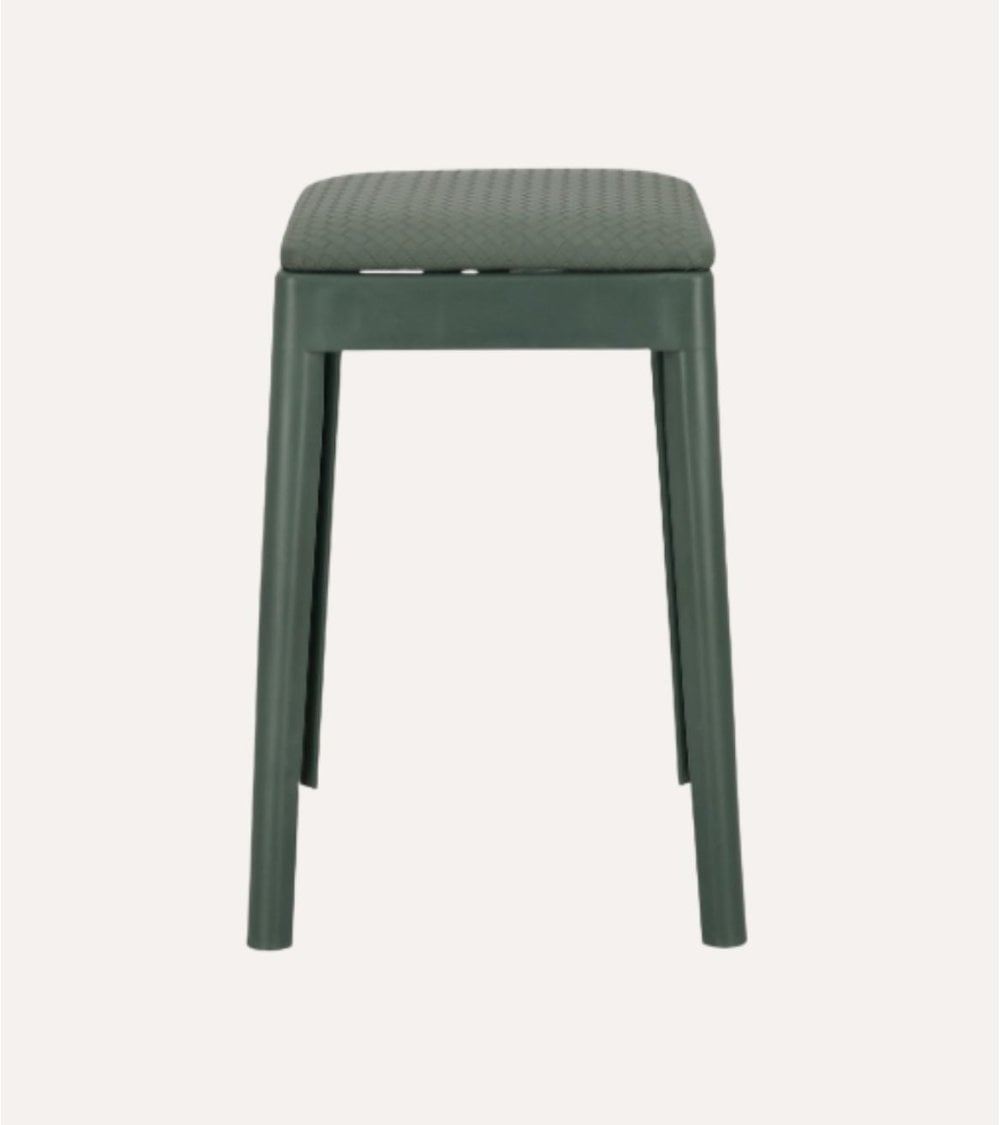 Su asiento está fabricado en polipiel de alta calidad, un tipo de cuero sintético suave al tacto, muy fácil de limpiar y especialmente adecuado para un uso diario intenso. Esta superficie acolchada ofrece un confort extra, permitiendo disfrutar de largas sobremesas o reuniones sin renunciar al estilo. La estructura en polipropileno aporta una excelente estabilidad y durabilidad, a la vez que mantiene un peso ligero que facilita mover el taburete de un lugar a otro sin esfuerzo.