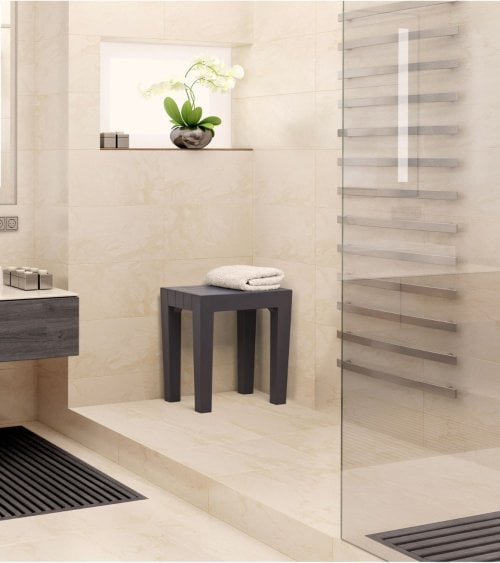 No solo es un asiento cómodo en el baño; también puede servir como reposapiés o como una pequeña mesa lateral para tus artículos de tocador. Su estética minimalista se adapta perfectamente a cualquier decoración contemporánea, haciendo del Taburete para Baño Lombok de Plástico una opción versátil y atractiva.