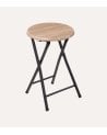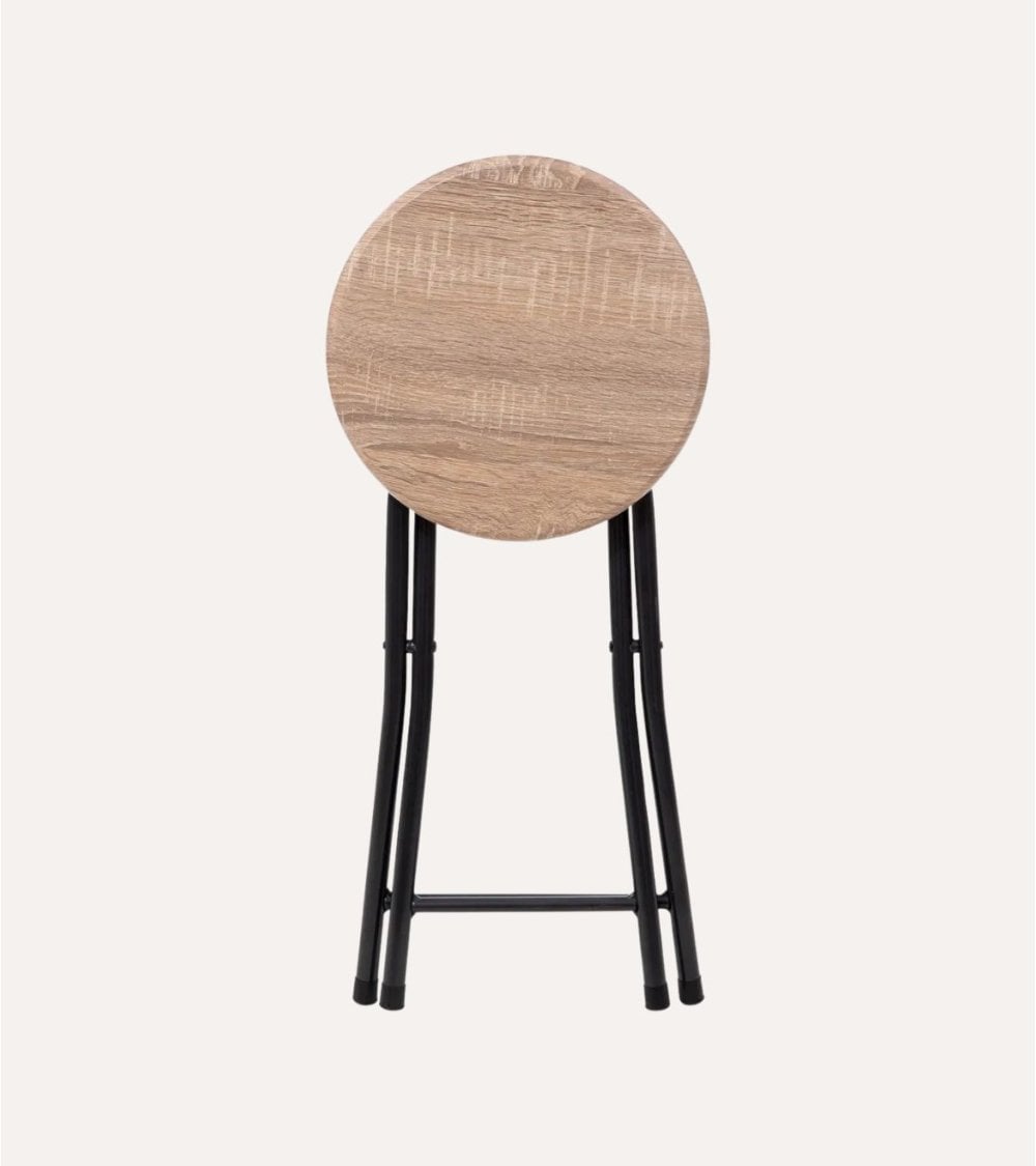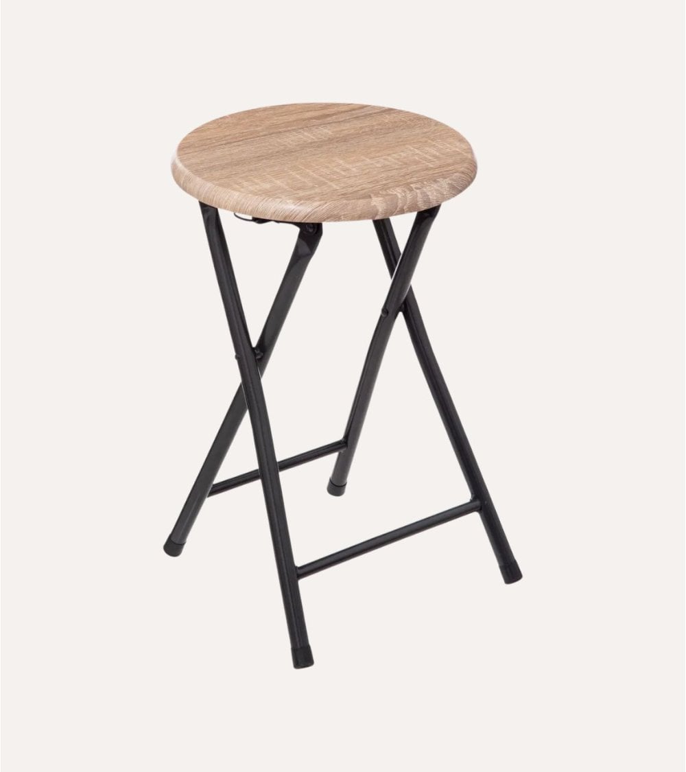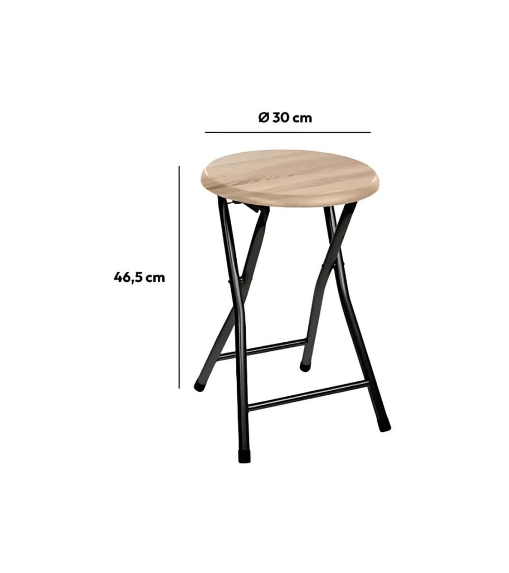 Este taburete plegable de color roble, fabricado en MDF, es la combinación perfecta de funcionalidad y estilo. Con medidas de 30 x 30 x 46 cm, se adapta a cualquier espacio. Sus patas negras aportan un toque de elegancia y resistencia. Ideal para cualquier habitación, es fácil de guardar y mover.