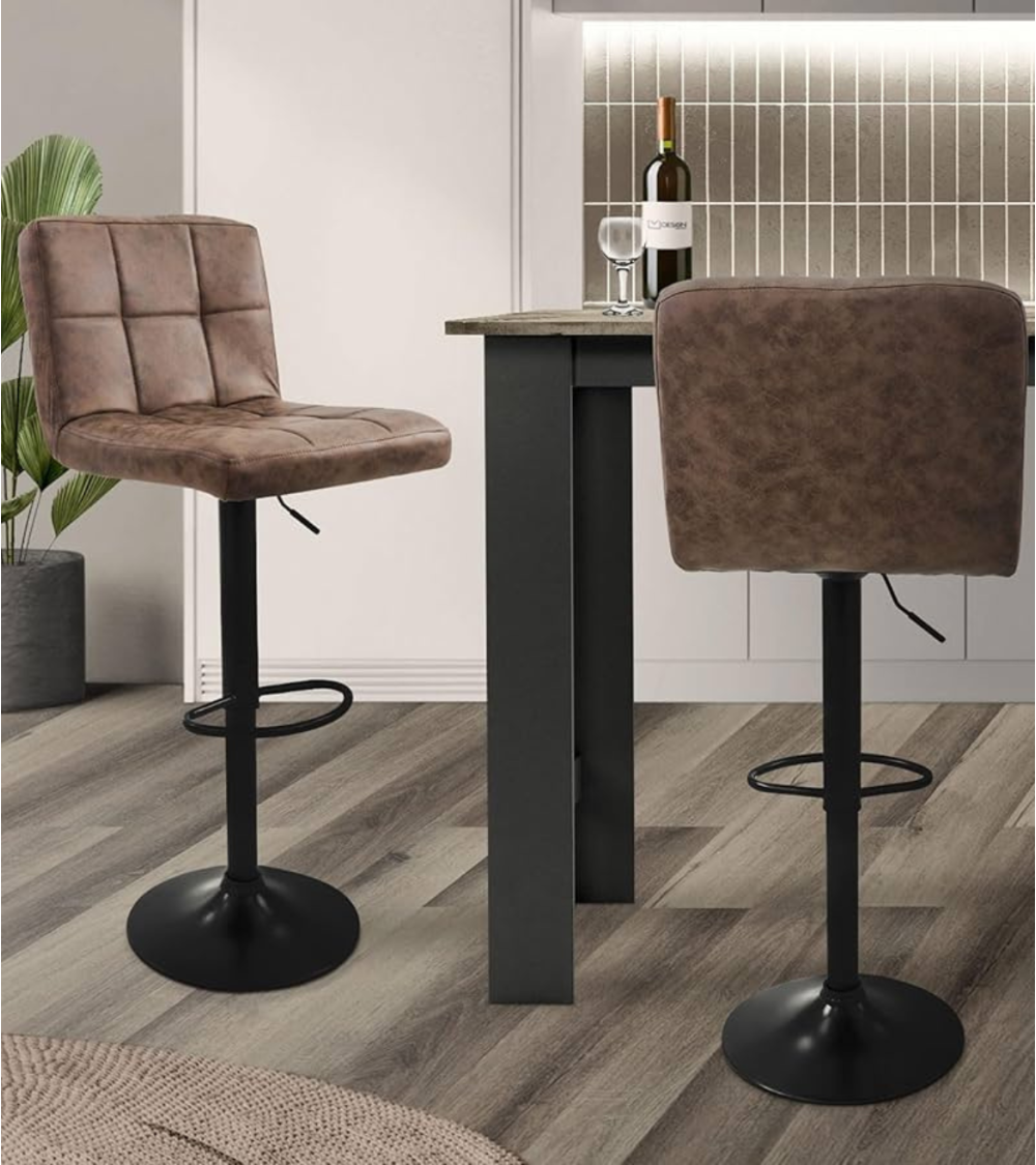 La Silla Alta Regulable Delek de Acero es la elección perfecta para espacios modernos gracias a su diseño minimalista. Se adapta a cocinas contemporáneas y bares elegantes. Tapizada en cuero sintético gris oscuro, resistente al uso diario, y con una base de acero de acabado negro mate, garantiza estabilidad y durabilidad. Sus dimensiones son 45 x 52 x 104 cm. El asiento cuadrado con bordes redondeados y respaldo bajo proporciona comodidad y soporte. Incluye un reposapiés integrado y un mecanismo hidráulico para ajustar la altura fácilmente. Disponible en gris y marrón.