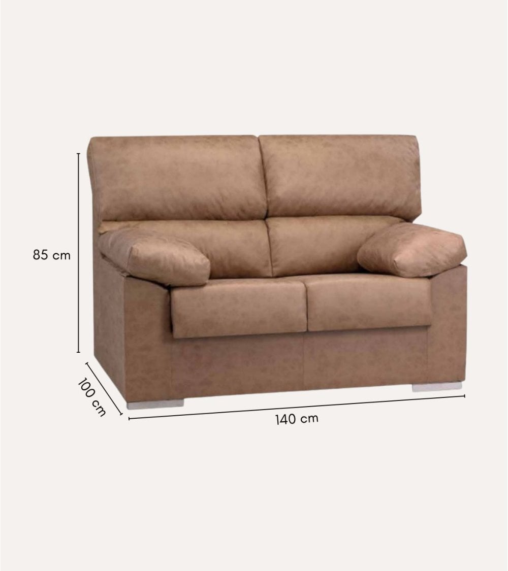 El Sofá Rubén de 2 Plazas, fabricado con materiales de alta calidad como madera, goma y MDF, ofrece resistencia y durabilidad excepcionales. Su diseño minimalista y tapizado en tonos neutros lo hacen ideal para salones, oficinas o áreas de descanso. Cuenta con un respaldo ligeramente reclinado para soporte ergonómico y brazos anchos y acolchados para una experiencia relajante. Su tamaño compacto de 140 x 85 x 100 cm es perfecto para espacios pequeños. La estructura es un marco rectangular sólido en madera resistente y el acolchado está relleno con goma para mayor comodidad.