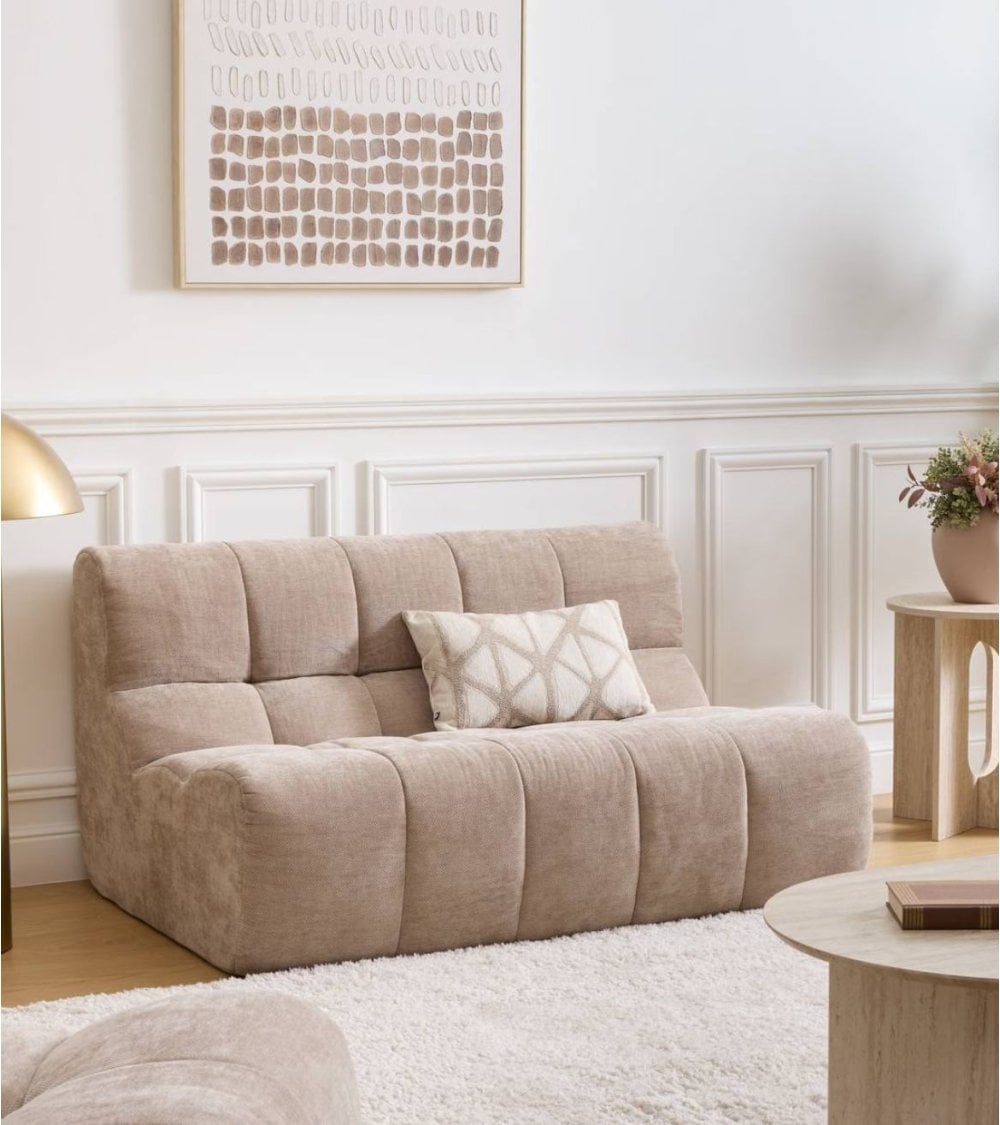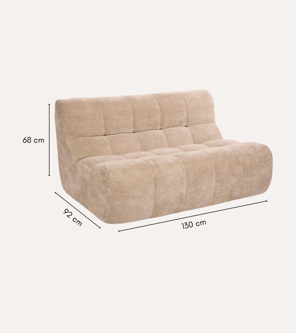 Tapizado en una suave chenilla de poliéster, este sofá ofrece una textura agradable al tacto y muy resistente al uso diario. En su interior, la espuma de poliuretano proporciona un soporte equilibrado: firme para mantener la postura, pero lo bastante mullido para sentir un confort envolvente. Es ideal para ver series, leer o simplemente relajarse después de un largo día. Su tono neutro combina con estilos nórdicos, modernos e incluso boho, permitiéndote jugar con cojines, mantas y alfombras para personalizar tu espacio. Además, su formato compacto está pensado para optimizar metros cuadrados sin renunciar al diseño.