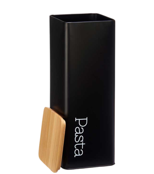 Este bote negro de metal para espagueti es un accesorio esencial para tu cocina. Con su tapa de bambú, mantiene tu pasta fresca y lista para usar. Su diseño elegante y moderno no solo es funcional, sino que también añade un toque de estilo a tu espacio. Ideal para mantener organizada tu cocina y para aquellos que aman la pasta.