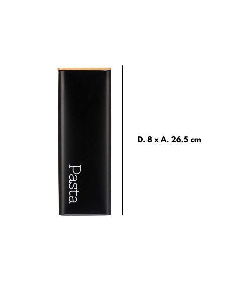 Bote Negro de Metal para Espagueti con Tapa de Bambú