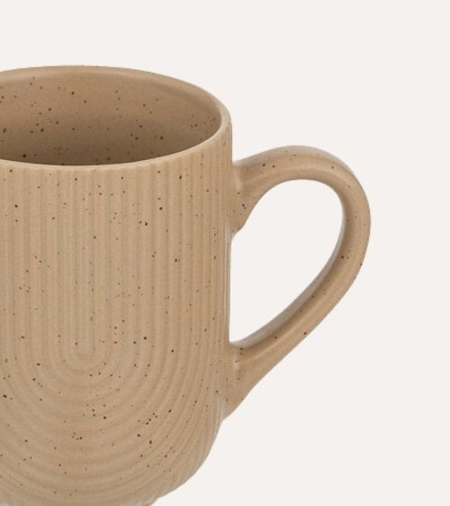 Fabricada en cerámica de alta calidad, esta taza presenta un acabado mate con textura tipo piedra que aporta un toque natural y sofisticado a cualquier cocina. Su color beige cálido y neutro facilita su integración en diversos estilos decorativos, desde el minimalismo moderno hasta ambientes más rústicos o clásicos.