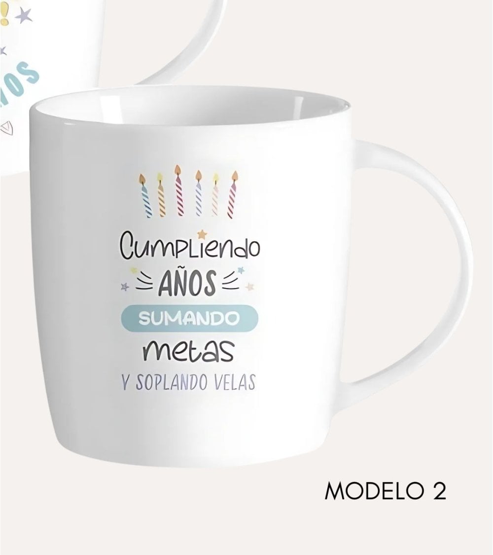 Esta taza con mensaje de cumpleaños es el regalo perfecto para cualquier cumpleañero. Con medidas de 8.3 x 8.3 x 10 cm, es el tamaño ideal para disfrutar de su bebida favorita. Disponible en dos modelos, esta taza no solo es práctica, sino también un regalo significativo y personal. No busques más, esta taza para regalar a un cumpleañero es la elección perfecta. Capacidad de 350 ml.