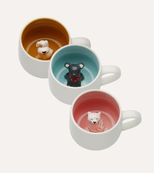 La Taza Mug Happy de Gato de Porcelana es el complemento perfecto para el desayuno de tus peques. Con unas dimensiones de 10.3 x 13.3 x 8.2 cm, esta taza es ideal para las pequeñas manos. Lo más destacado es el adorable gatito sentado en el fondo de la taza, que mira hacia arriba con una expresión tierna, añadiendo un toque de diversión a la hora del desayuno.