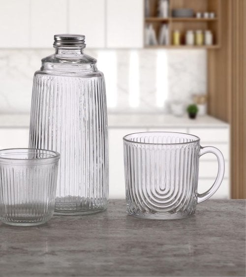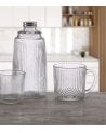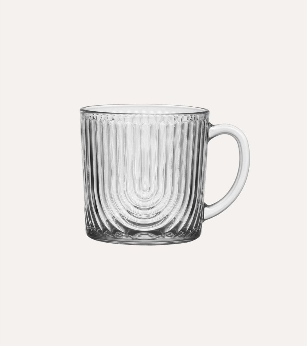 Con su textura ribeteada, la Taza Mug Lake de Cristal presenta un patrón visualmente atractivo de líneas verticales que no solo embellece el diseño, sino que también proporciona un agarre cómodo. Su forma cilíndrica y ligeramente acampanada en la parte superior asegura una experiencia placentera al beber.