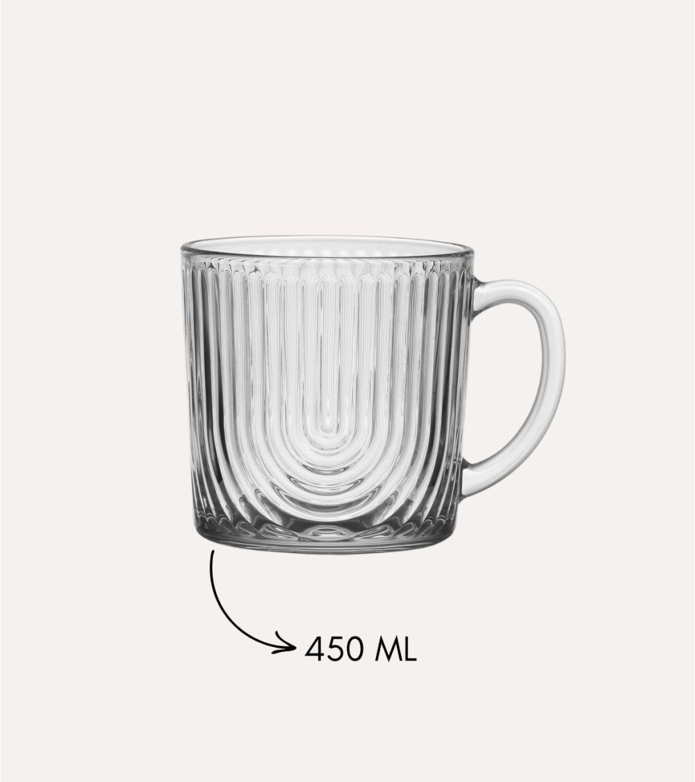 La Taza Mug Lake de Cristal es una elección perfecta para disfrutar de tu bebida favorita. Con una capacidad de 450 ml, es ideal para cualquier momento del día. Su diseño de ondas en el cristal no solo le da un toque elegante, sino que también mejora la experiencia de beber. Esta taza es más que un simple recipiente, es un complemento para tu estilo de vida.
