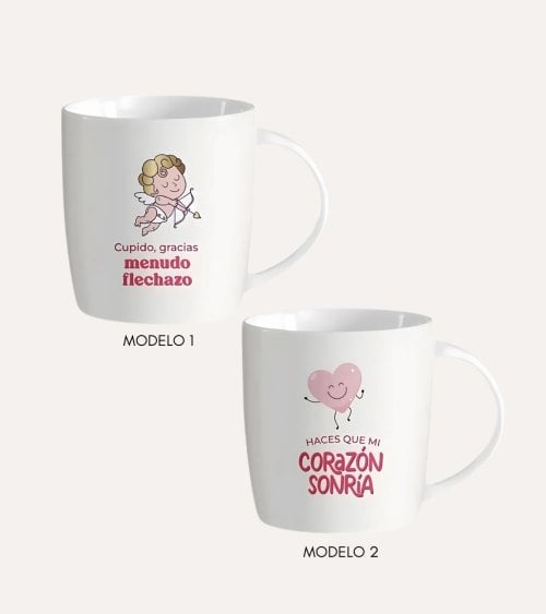 Taza fabricada en cerámica con una capacidad de 350 ml y estampado de enamorados. Disponible en diferentes modelos surtidos.