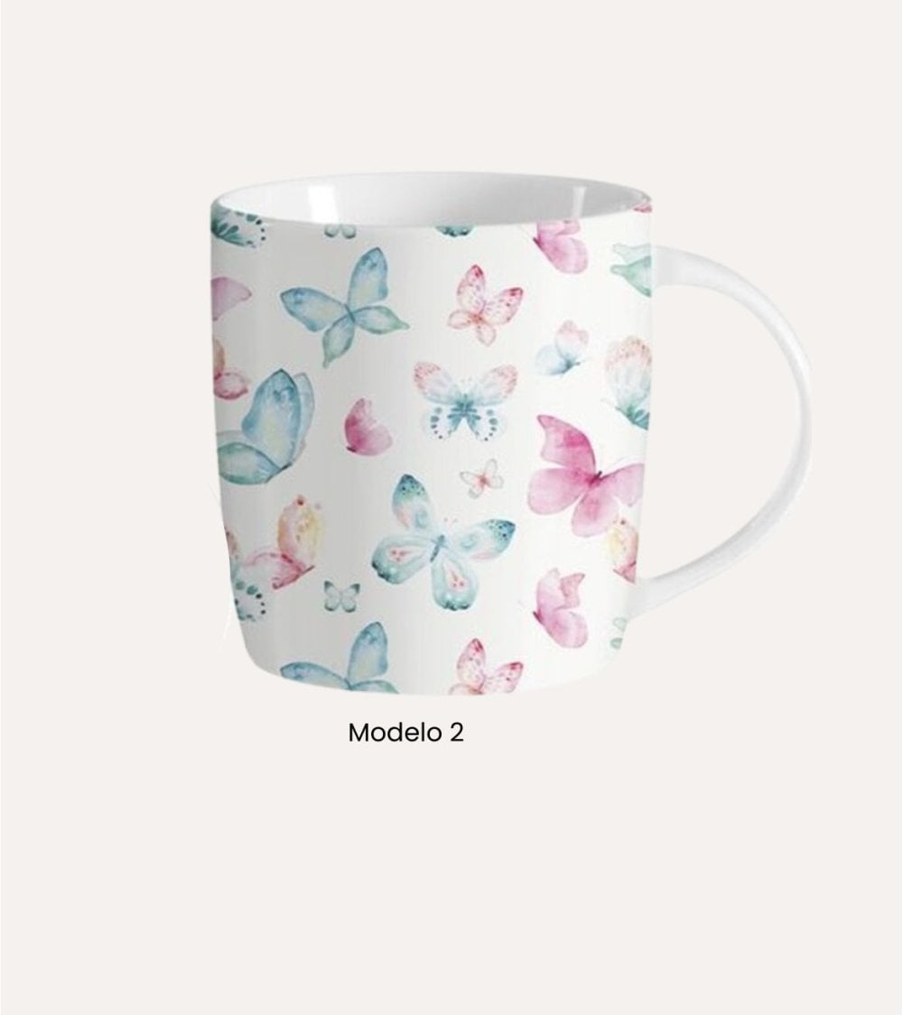 - Diseño Único: Cada taza cuenta con ilustraciones de mariposas en estilo acuarela, variando en tamaños y orientaciones para mayor interés visual.