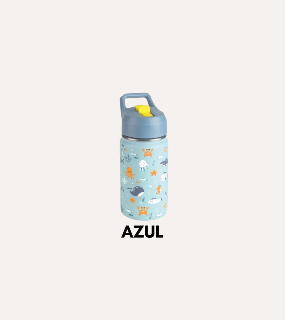 Esta botella está elaborada en acero inoxidable 18/10, un material de alta calidad que garantiza durabilidad, resistencia a golpes y corrosión, además de ser completamente seguro para el contacto con alimentos y bebidas. Su acabado con recubrimiento en polvo ofrece una superficie antideslizante que facilita su agarre incluso para manos pequeñas.