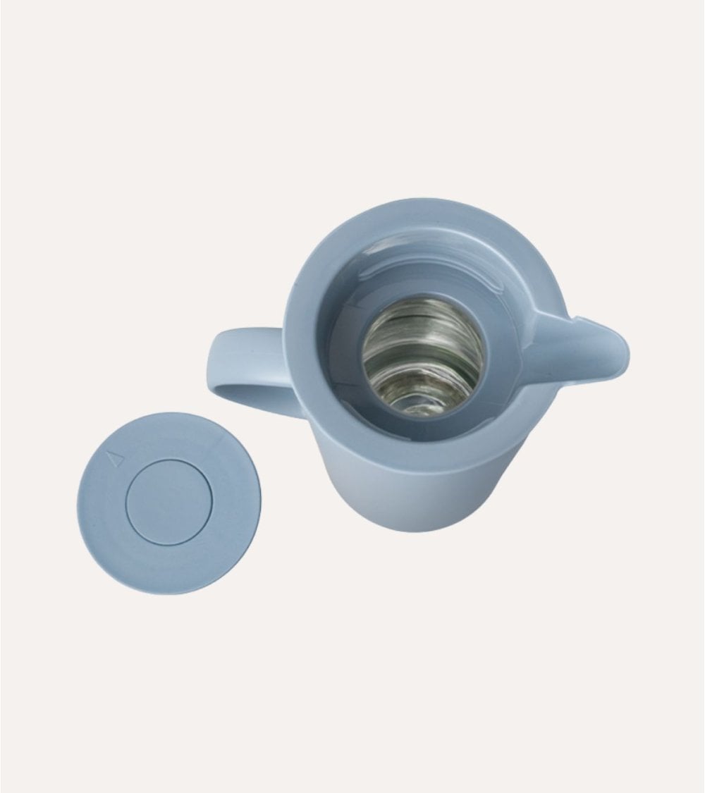 Su diseño moderno y minimalista se presenta en dos atractivas variaciones de color: Azul y Negro, perfectas para integrarse en cualquier tipo de cocina u oficina. Gracias a su estructura alta y cilíndrica, esta jarra termo ocupa poco espacio pero ofrece una capacidad ideal para el uso diario, en reuniones familiares, en la oficina o en celebraciones especiales.