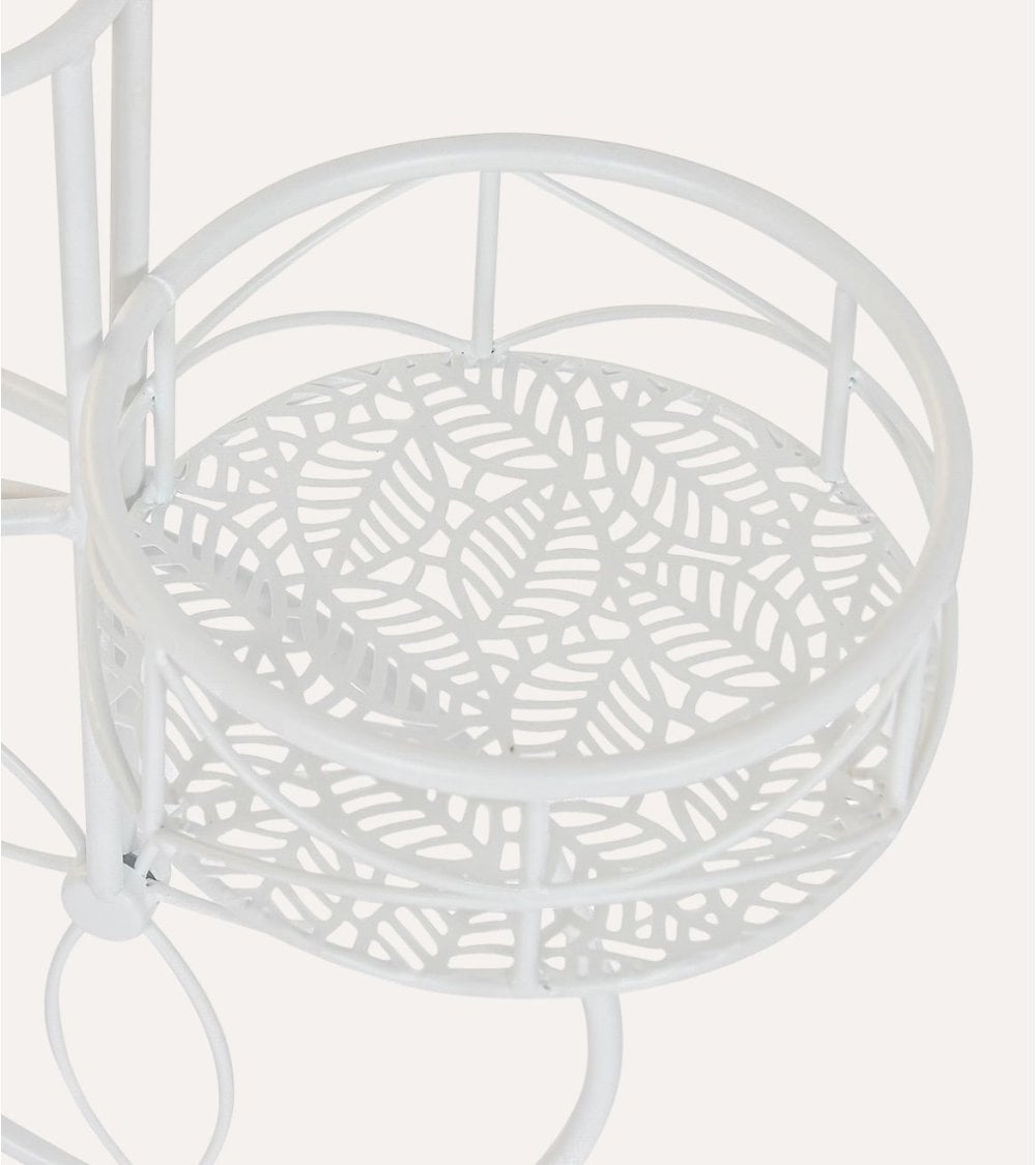 Su estructura metálica, con acabado en color claro y líneas curvas, crea una silueta ligera y decorativa que aporta sensación de amplitud. Las cestas metálicas, con diseño calado tipo hoja, permiten una correcta circulación del aire alrededor de las macetas y facilitan el drenaje, ayudando a mantener tus plantas en óptimas condiciones. Gracias a su aspecto versátil, el Portamacetas Bicicleta Hojas de Hierro encaja tanto como pieza central en una zona de descanso exterior como complemento junto a muebles de jardín, aparadores o recibidores.