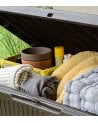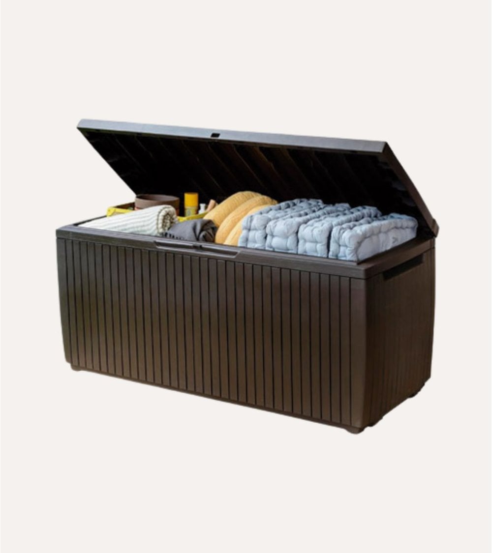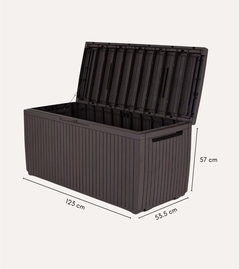El Arcón para Exteriores Springwood de Resina es el complemento perfecto para su jardín o terraza. Este arcón de exterior es ideal para guardar cojines, herramientas de jardín y cualquier otro objeto que necesite tener a mano pero protegido de las inclemencias del tiempo. Con su sistema de ventilación, el contenido se mantiene siempre seco y ventilado, lo que garantiza la durabilidad de sus pertenencias.