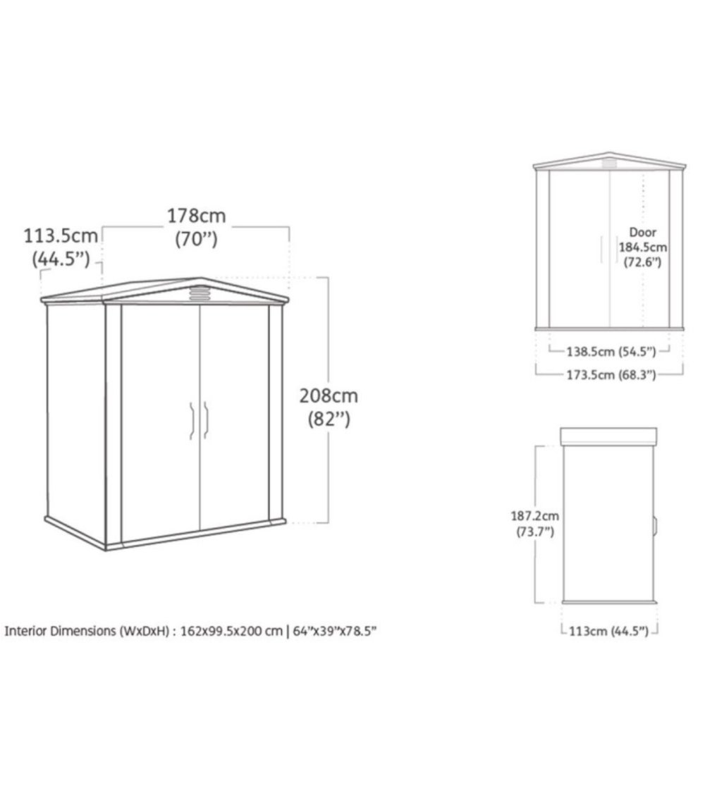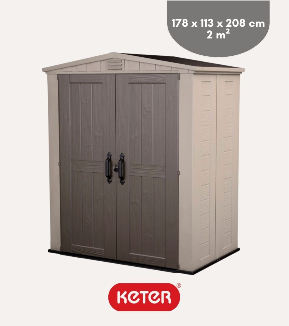 La Caseta para Exteriores Factor para Jardín es perfecta para organizar y proteger tus herramientas de jardín. Disponible en tres tamaños: pequeño (178 x 113,5 x 208 cm), mediano (243 x 182 x 256,5 cm) y grande (243 x 331.5 x 256,5 cm). Su diseño robusto y resistente garantiza durabilidad y funcionalidad. Ideal para cualquier jardín.