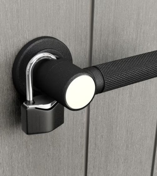 Con un diseño contemporáneo, este cobertizo presenta una estructura rectangular alta que maximiza el espacio interior, permitiendo almacenar herramientas de jardinería, equipos deportivos o decoraciones estacionales. Su color gris suave con detalles en negro no solo aporta un toque moderno, sino que también se integra perfectamente en cualquier entorno exterior.