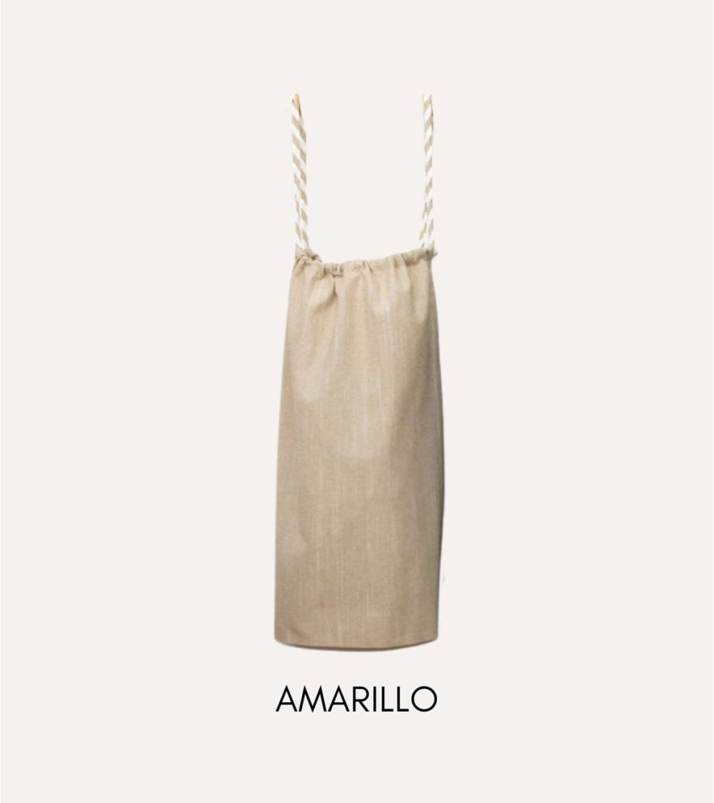 - Materiales: Combinación resistente y natural de poliéster y algodón.