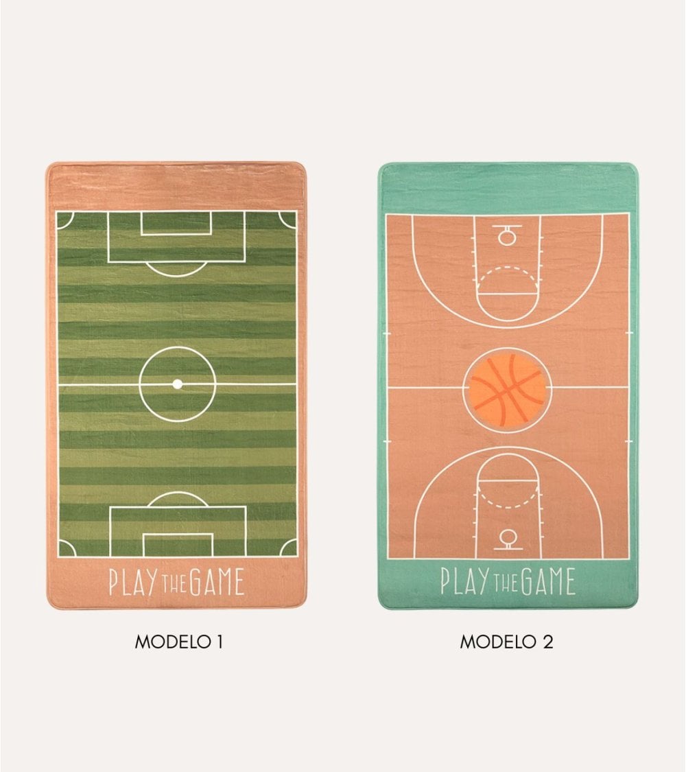 Fabricada con poliéster de alta calidad y base de PVC antideslizante, ofrece una superficie suave al tacto pero resistente al uso diario. Su diseño incluye dos variantes: un modelo que simula un campo de fútbol con líneas bien definidas, y otro que reproduce una cancha de baloncesto con todos sus detalles.