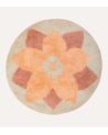 Color y Diseño: La base en un suave tono beige o blanco roto sirve como el lienzo perfecto para el hermoso diseño floral en el centro. Las pétalos en tonos durazno y coral suave, junto con el centro claro decorado con pequeños puntos, aportan calidez y alegría al espacio.
