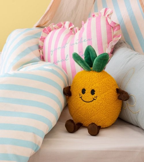 No hay duda de que la Piña de Peluche es perfecta para decorar habitaciones infantiles o áreas de juego. Su estilo lúdico se adapta a diversas temáticas decorativas, desde tropicales hasta frutales. Además, su suavidad lo convierte en un excelente compañero durante las horas de juego o descanso.