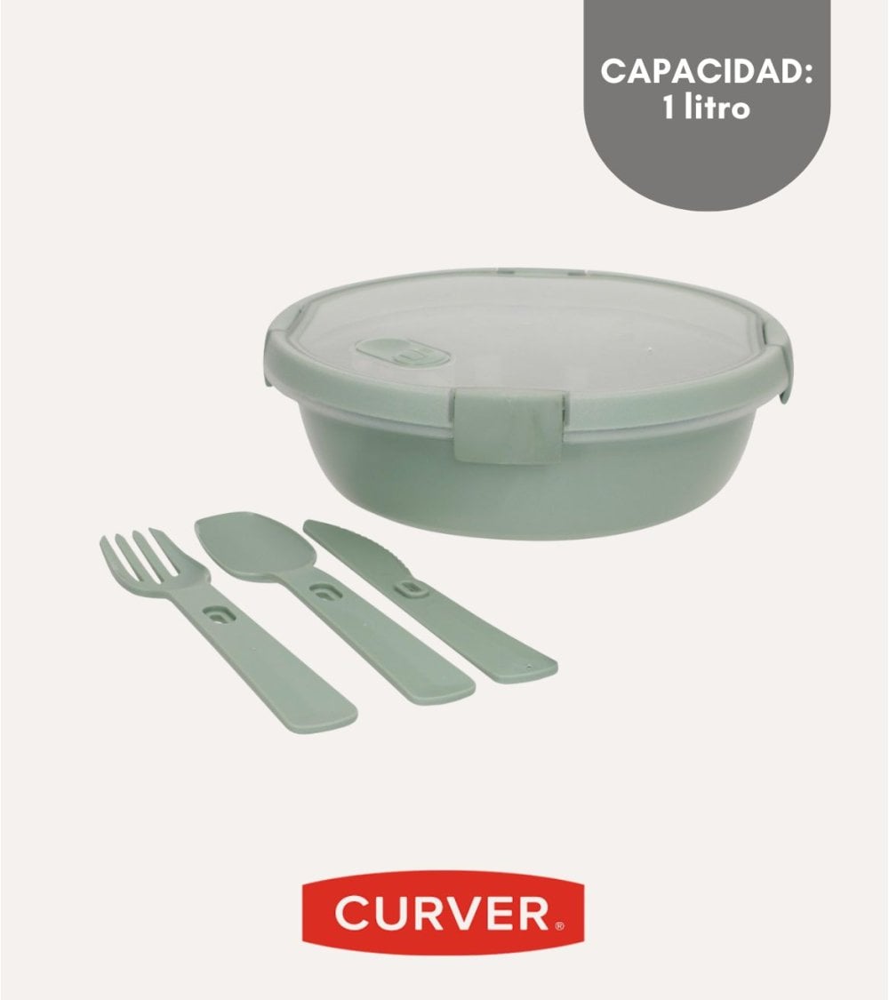 La Fiambrera Redonda To Go con Cubiertos de Curver, disponible en ALI Hogar, es la compañera ideal para llevar tus comidas al trabajo, a la universidad o de viaje. Diseñada para quienes buscan una fiambrera funcional, moderna y resistente, combina practicidad y estilo en un solo producto. Fabricada en plástico reciclado, contribuye a un consumo más sostenible sin renunciar a la calidad.