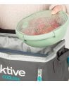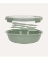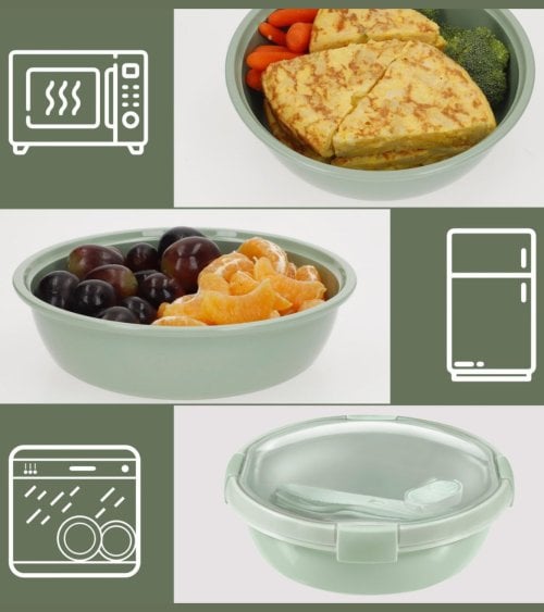 - Incluye cubiertos integrados (tenedor, cuchara y cuchillo) en el mismo tono, ideales para comer fuera de casa.