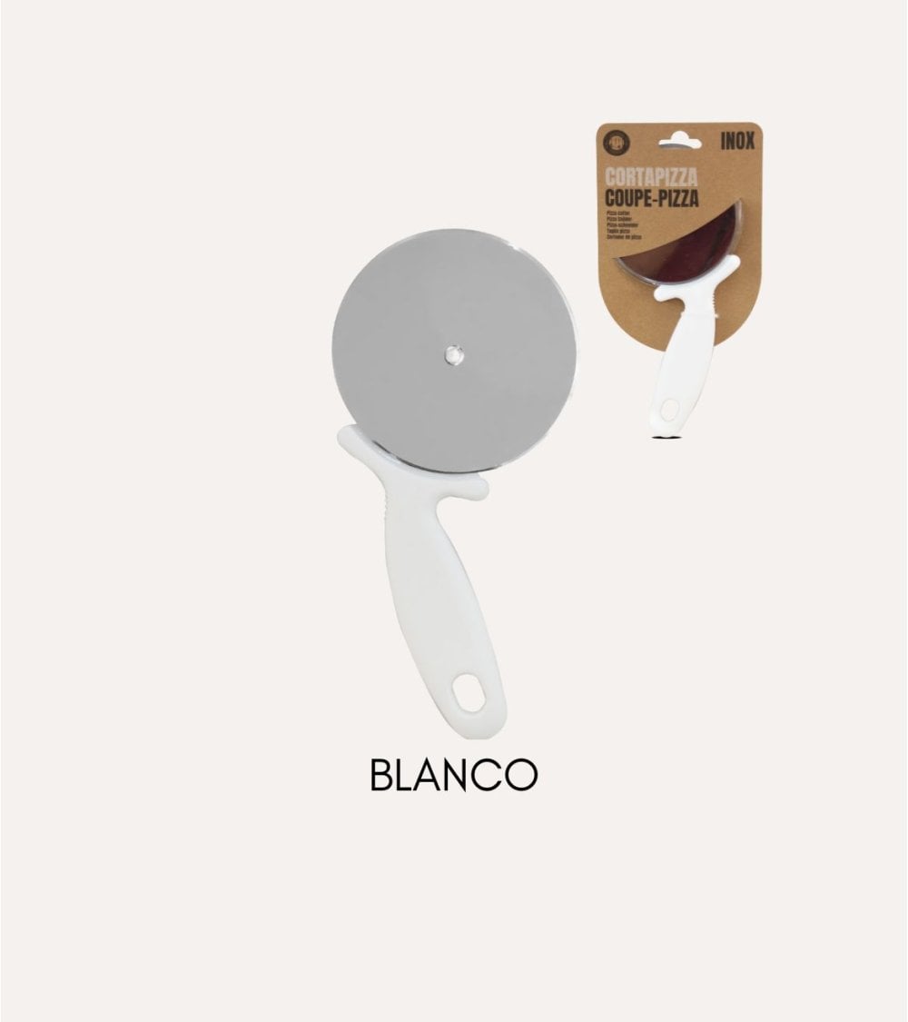 El cuchillo cortador cuenta con una hoja circular fabricada en acero inoxidable, lo que garantiza durabilidad, resistencia a la corrosión y un filo afilado que facilita el corte limpio en cada uso. Su mango ergonómico de plástico está disponible en tres colores modernos: blanco, gris y negro, adaptándose a cualquier estilo de cocina.