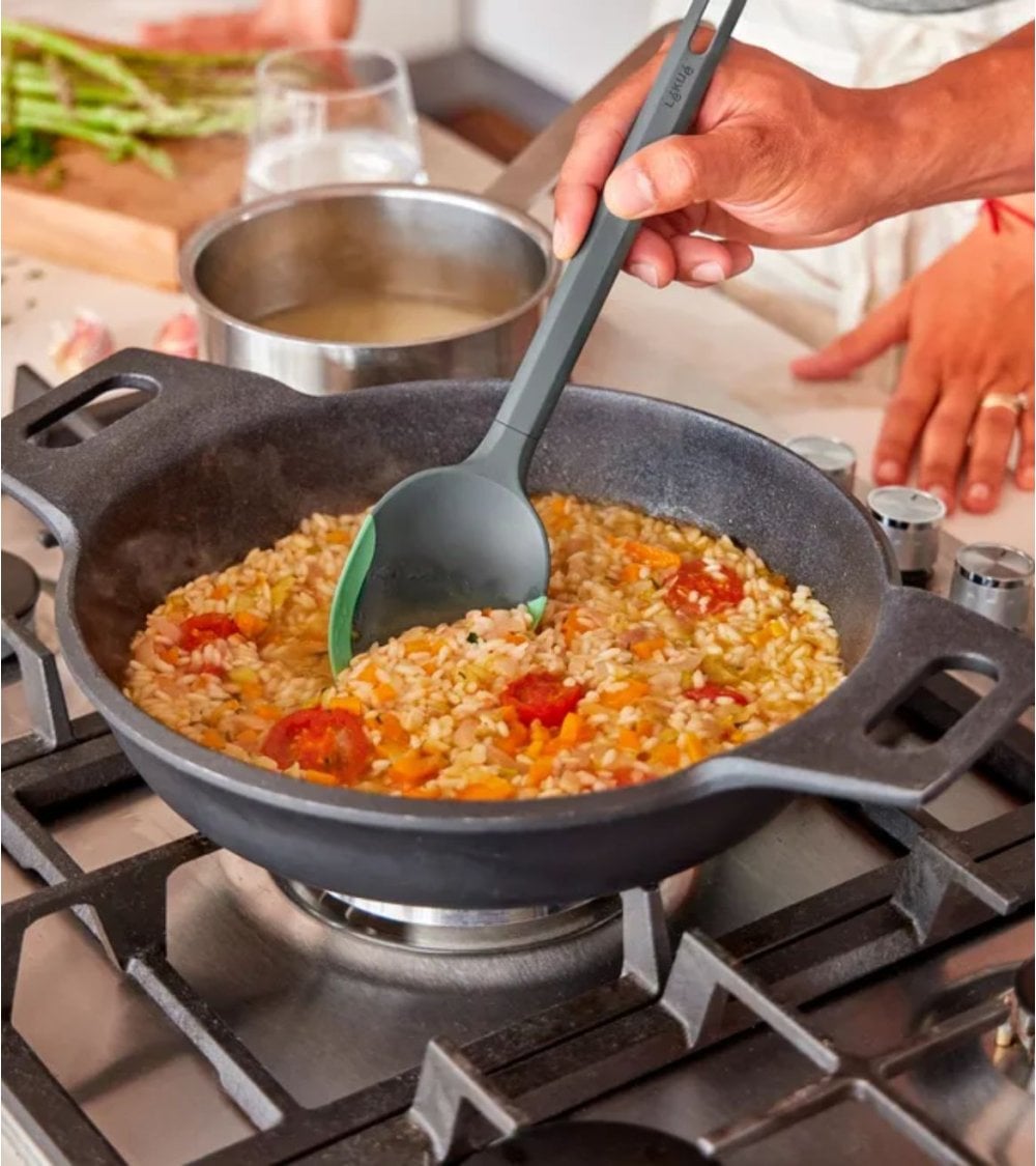 La Cuchara de Cocina Essential Antirayaduras de Lékué es el utensilio perfecto para quienes buscan combinar estilo y funcionalidad en la cocina. Fabricada con silicona de platino, este utensilio no solo es resistente, sino que también está diseñado para ser apto para lavavajillas, lo que facilita su limpieza y mantenimiento.