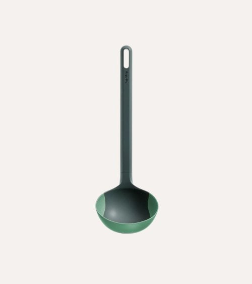 Este cucharón para sopa Essential Antirayaduras es ideal para tu cocina. Fabricado con silicona de platino, es resistente y duradero. Su diseño de doble tono en verde aporta un toque moderno. Con un tamaño de 26 cm de largo, es perfecto para servir sopa. Además, es apto para lavavajillas, garantizando una limpieza sencilla. Su característica anti-rayaduras lo hace ideal para usar con utensilios antiadherentes sin preocuparte por daños.