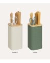 Diseño Moderno: El set incluye dos bloques de cuchillos, cada uno con un color y textura únicos. Uno presenta un suave tono crema, mientras que el otro es un profundo verde apagado. Esta combinación no solo aporta estilo, sino que también se adapta a diversas decoraciones de cocina.