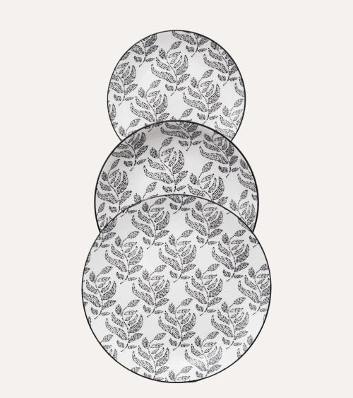 - Tamaños: Plato Llano: 27 cm de diámetro. Plato Hondo: 21.5 cm de diámetro. Plato de Postre: 19 cm de diámetro.