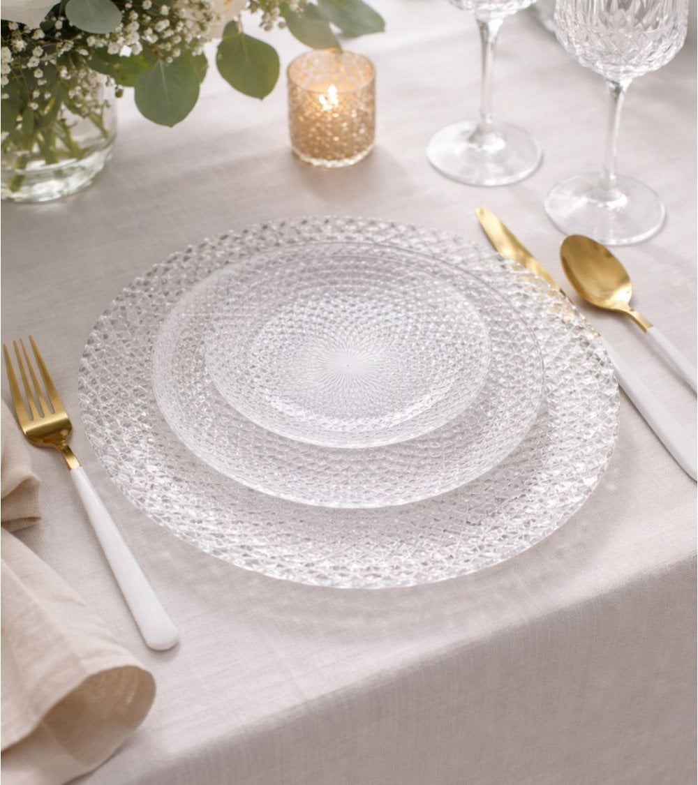 Esta vajilla es perfecta para quienes buscan combinar estética y practicidad. Gracias a su transparencia, podrás resaltar los colores y texturas de tus platillos favoritos, haciendo cada comida una experiencia visualmente atractiva. Además, su diseño atemporal se adapta fácilmente a diferentes estilos de decoración y menaje.