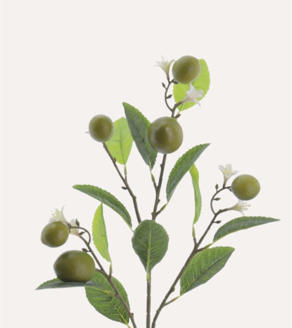 Esta rama de lima decorativa con flores de plástico es una pieza auténtica y resistente, elaborada con plástico y poliéster. Ideal para jarrones estándar o arreglos florales complejos, presenta hojas en tonos verdes variados y pequeños frutos en la punta. Su diseño naturalista se adapta a estilos decorativos modernos, rústicos o minimalistas. Además, su mantenimiento es sencillo gracias a sus materiales duraderos. La estructura consta de una rama central delgada con múltiples ramificaciones equilibradas.