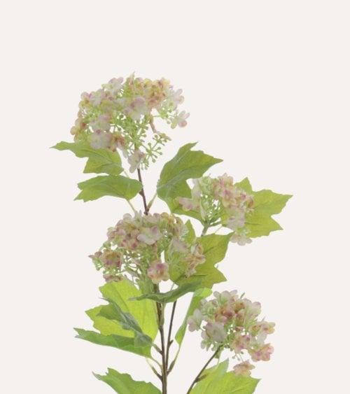 - Diseño: Flores miniatura tipo viburnum con hojas verdes detalladas y texturizadas.