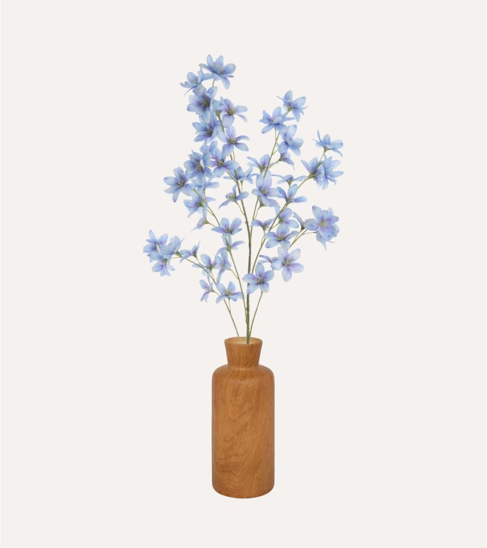 Disponible en tres colores encantadores: Azul, Blanco y Rosa, esta pieza se adapta fácilmente a diferentes estilos decorativos, desde ambientes modernos hasta espacios más rústicos o minimalistas. Su diseño detallado incluye flores pequeñas con cinco pétalos ligeramente curvados y hojas verdes distribuidas a lo largo del tallo, aportando una apariencia natural que cautiva a primera vista.