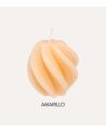 Fabricada con cera de parafina, esta vela destaca por su acabado suave y brillante, que realza sus formas espirales cuidadosamente diseñadas. Su textura ondulada no solo aporta un toque artístico, sino que también crea un juego de luces y sombras encantador cuando la vela está encendida, generando una atmósfera acogedora y relajante.