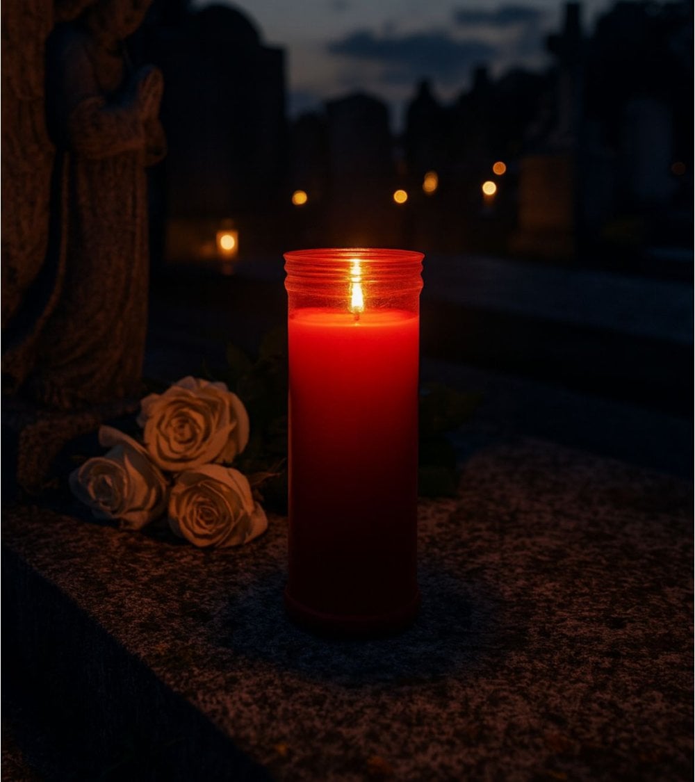 Fabricado con una mezcla de parafina y cera vegetal, este velón ofrece una combustión limpia y duradera, perfecta para crear ambientes acogedores en el hogar o en eventos especiales. Su color rojo intenso no solo aporta un impacto visual fuerte sino que también simboliza energía, pasión y protección, características muy valoradas en rituales espirituales o decoraciones temáticas.