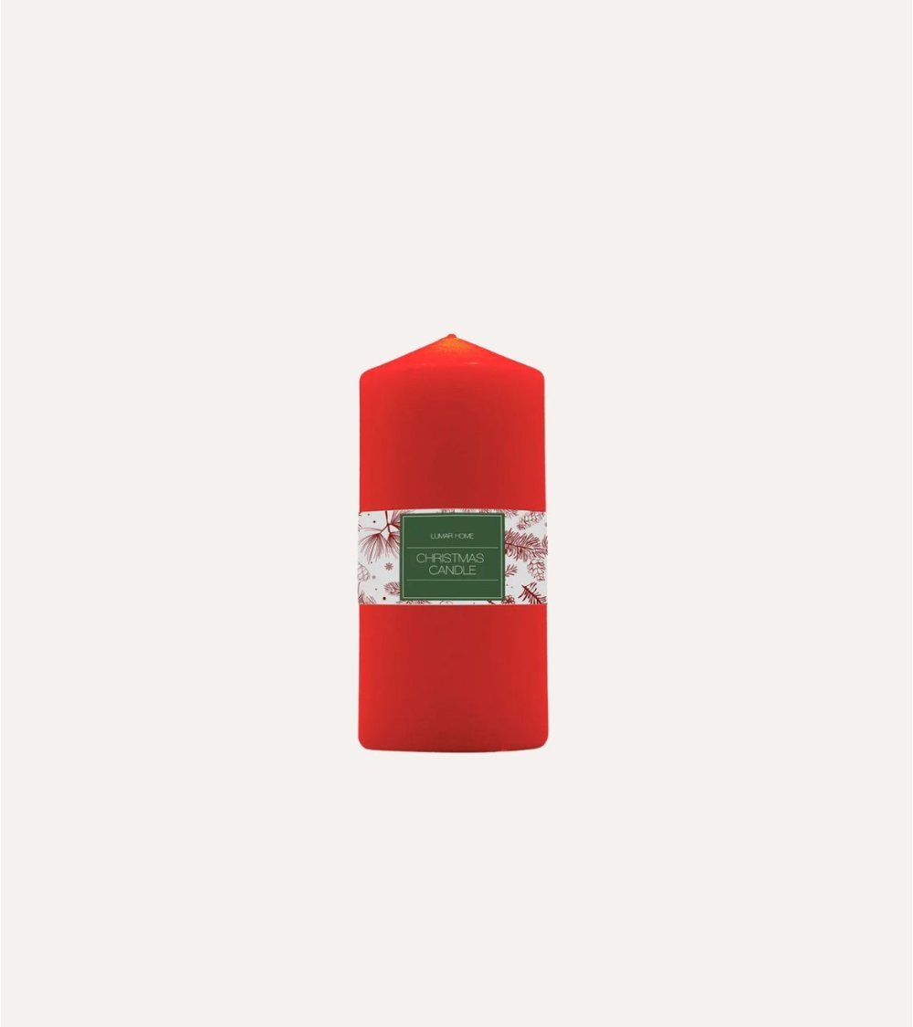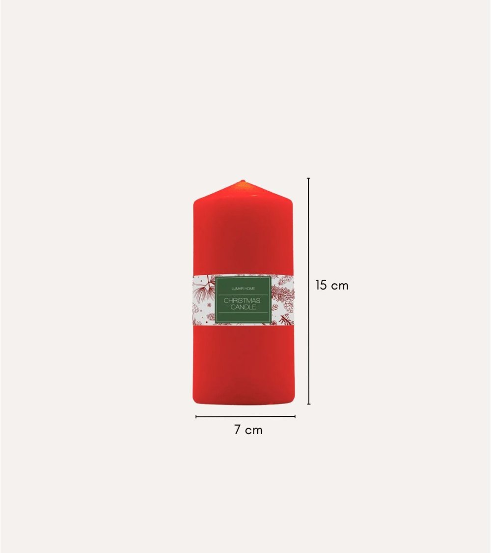 Disponible en dos tamaños prácticos, 10 cm y 15 cm, esta vela se adapta fácilmente a diferentes ambientes, desde mesas de centro hasta repisas o rincones especiales. Además, su diseño cilíndrico con una punta ligeramente afilada aporta un detalle elegante y distintivo que realza cualquier decoración navideña.