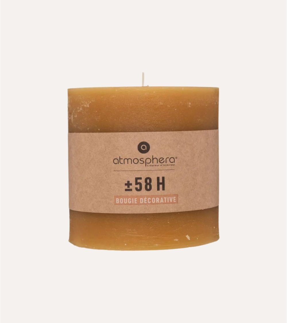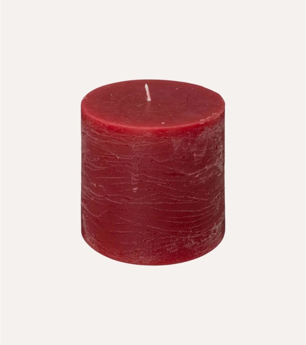 Disponible en una amplia gama de colores que incluyen Beige, Blanco, Amarillo, Rosa, Verde, Azul, Gris, Negro, Taupe y Rojo, esta vela se adapta perfectamente a diferentes estilos decorativos: desde ambientes rústicos hasta modernos o tradicionales. Su forma cilíndrica con base ligeramente más ancha garantiza estabilidad y un encendido seguro.