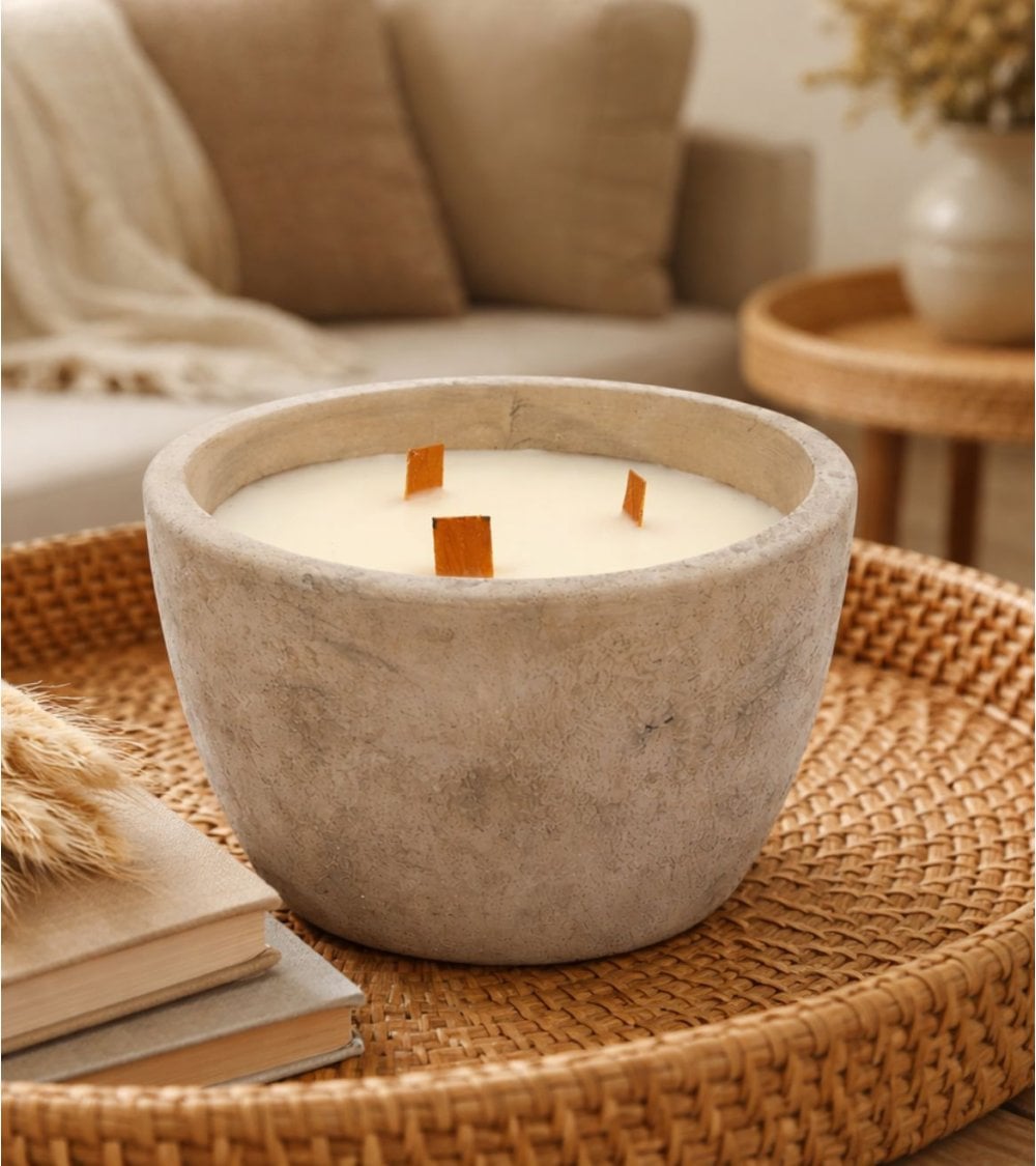 Su diseño redondeado y minimalista encaja a la perfección en salones, dormitorios, recibidores o zonas de trabajo, aportando un toque moderno y sofisticado. Las 3 mechas ofrecen una llama más amplia y estable que las velas tradicionales, logrando una iluminación suave y envolvente, ideal para momentos de relax, lectura o cenas especiales. Además, el tarro de cerámica puede reutilizarse posteriormente como pequeño macetero, vaciabolsillos o elemento decorativo, alargando la vida útil del producto.