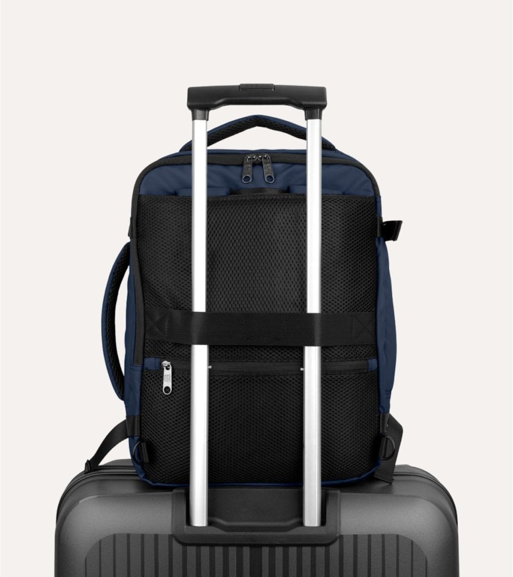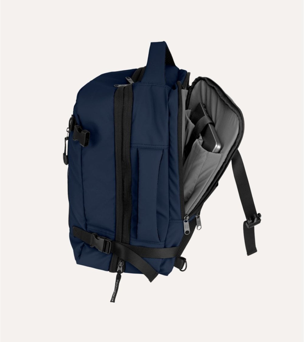 La Mochila de Viaje Canada para Cabina ofrece una estructura rectangular con bordes ligeramente redondeados que aportan un toque contemporáneo. Sus dimensiones son perfectas para cumplir con las normativas de equipaje de mano: mide 30 x 40 x 20/24 cm, proporcionando espacio suficiente para organizar tus objetos esenciales sin exceder el tamaño permitido. Peso:1 kg. Capacidad: 24/28,8 L