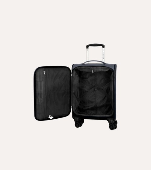 La Maleta de Tela Cloud es una maleta blanda muy ligera, ideal para tus viajes. Este modelo cuenta con cuatro ruedas dobles que facilitan su transporte. Dispone de dos bolsillos pequeños exteriores para guardar tus objetos personales y una gran capacidad interior para todo lo que necesitas llevar. Está disponible en tres medidas: la pequeña de 38 x 20 x 55 cm y 2 kilos, la mediana de 42 x 26 x 69 cm y 2.7 kilos, y la grande de 47 x 28 x 79 cm y 3 kilos.