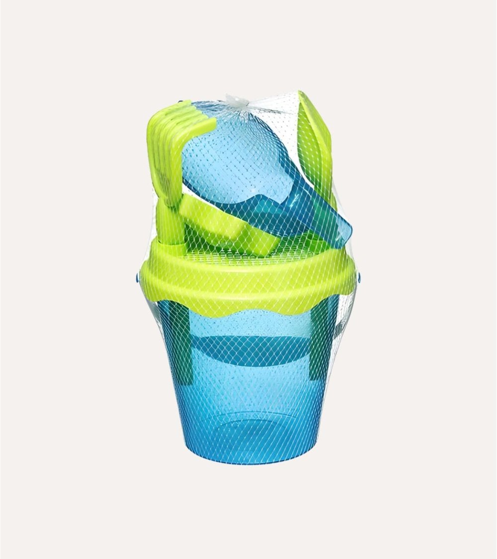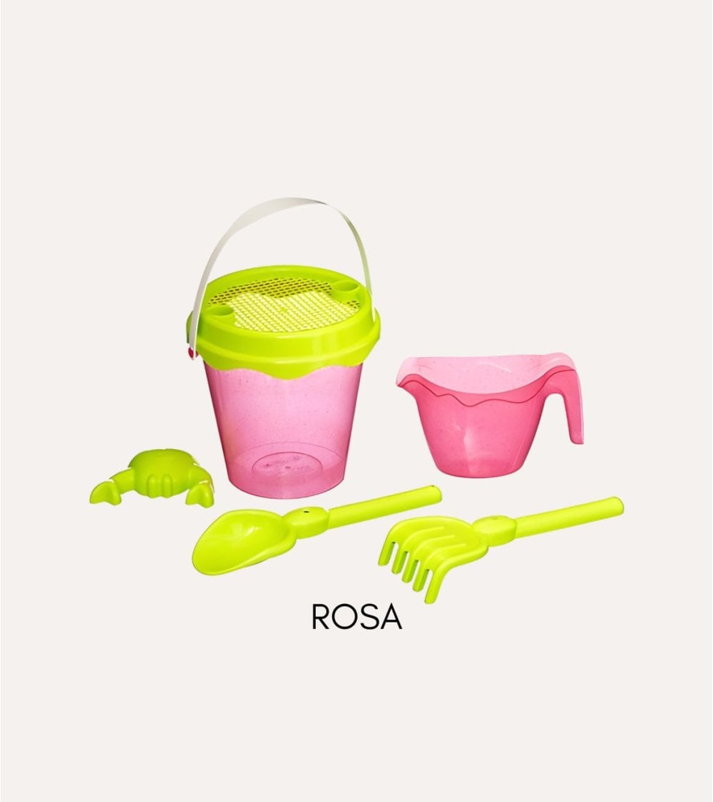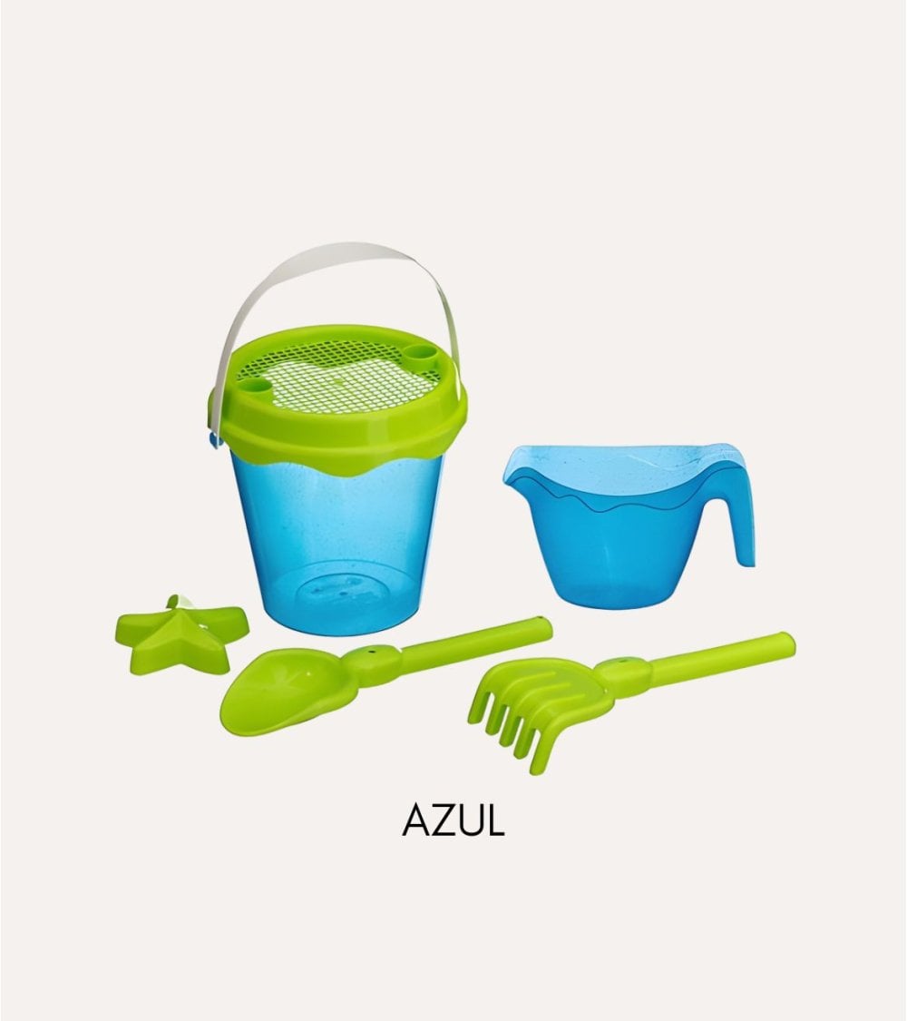 Cada set incluye un práctico cubo con tapa decorada, asa ergonómica y superficie texturizada para un mejor agarre, junto con herramientas esenciales para jugar en la arena, como pala, rastrillo y vasito. Las variaciones de color permiten elegir entre un modelo en tonos azules y otro en tonos rosas, ambos combinados con accesorios en verde vivo. De este modo, podrás escoger el estilo que mejor se adapte a la personalidad de cada niño, o incluso combinar varios sets para ampliar las posibilidades de juego.