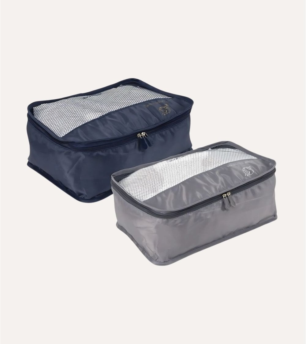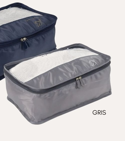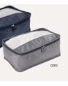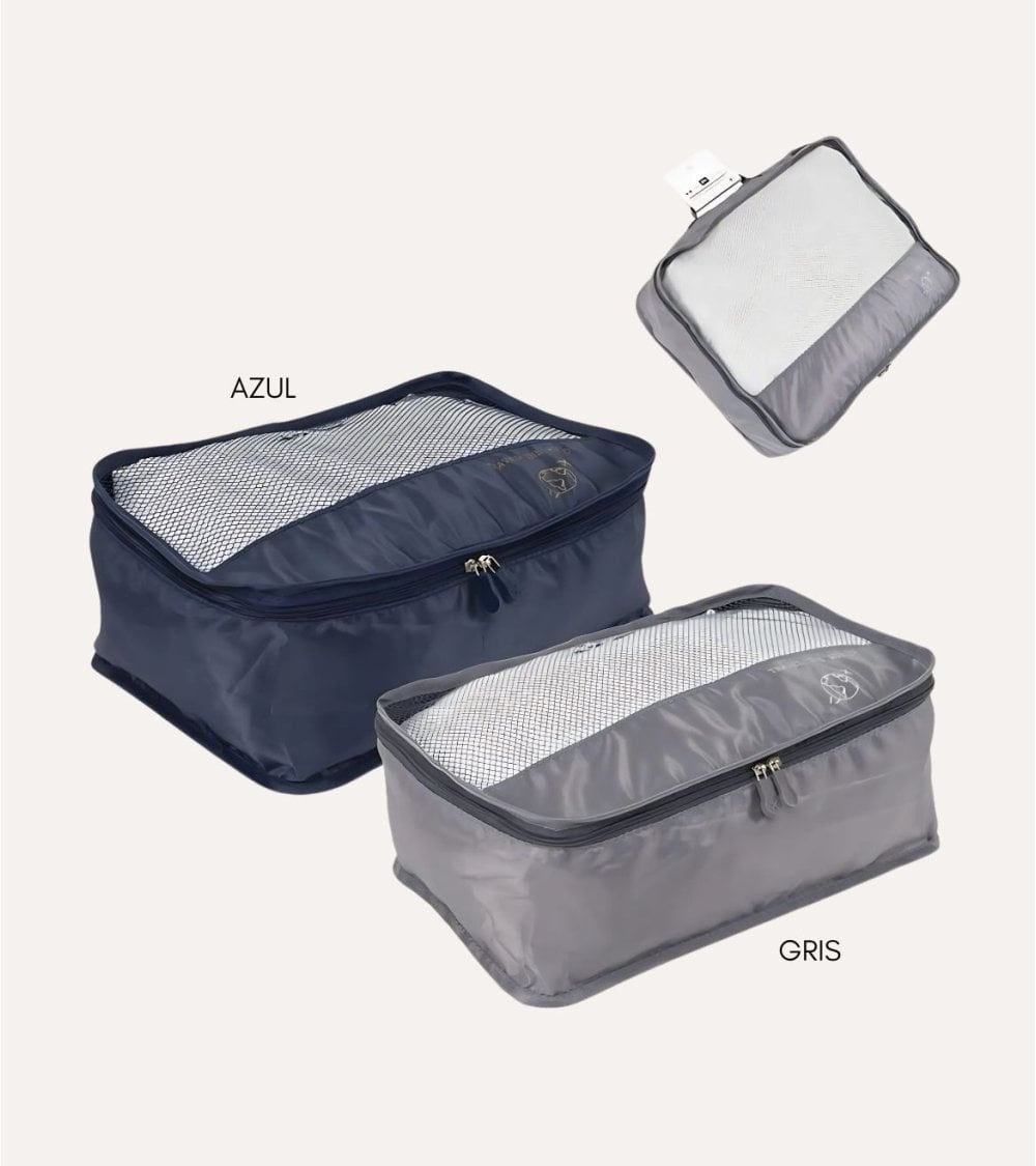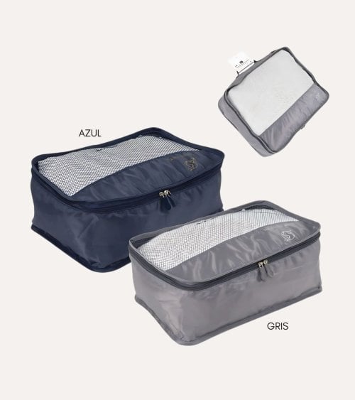 El Organizador de Ropa para Maleta Travel está disponible en dos atractivos colores, azul y gris, para adaptarse a su estilo personal. Este organizador ofrece tres tamaños diferentes, pequeño (30 x 12 x 20 cm), mediano (33 x 12 x 28 cm) y grande (40 x 12 x 32 cm), para satisfacer todas sus necesidades de almacenamiento durante sus viajes.