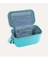 Su diseño moderno en un vibrante color turquesa, junto con su estructura rígida, no solo proporciona estabilidad, sino que también asegura la durabilidad necesaria para resistir los rigores del transporte. Este neceser es ideal tanto para escapadas cortas como para viajes prolongados.